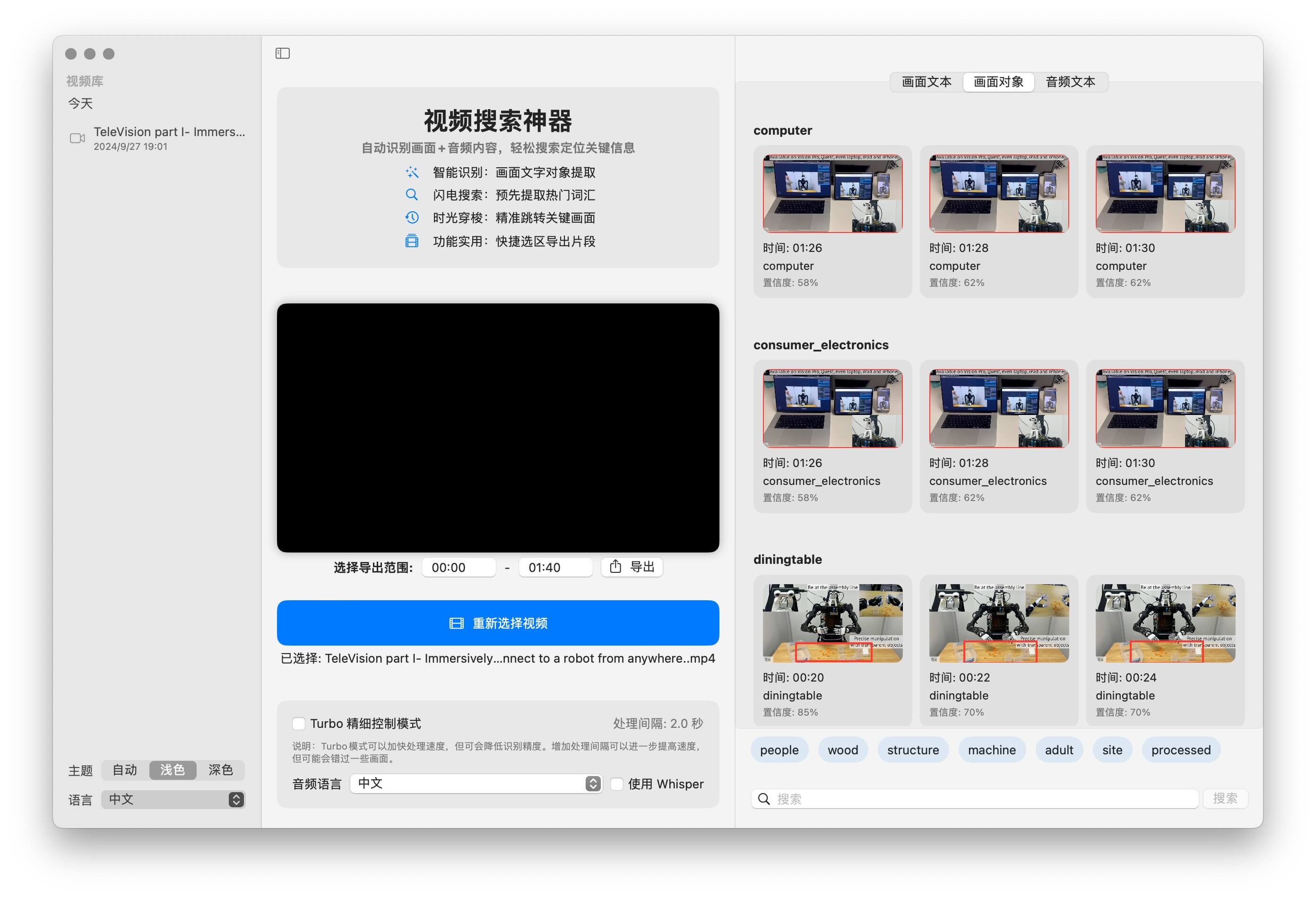 - Native app lets you search on-screen text, visual objects, and transcript keywords simultaneously.