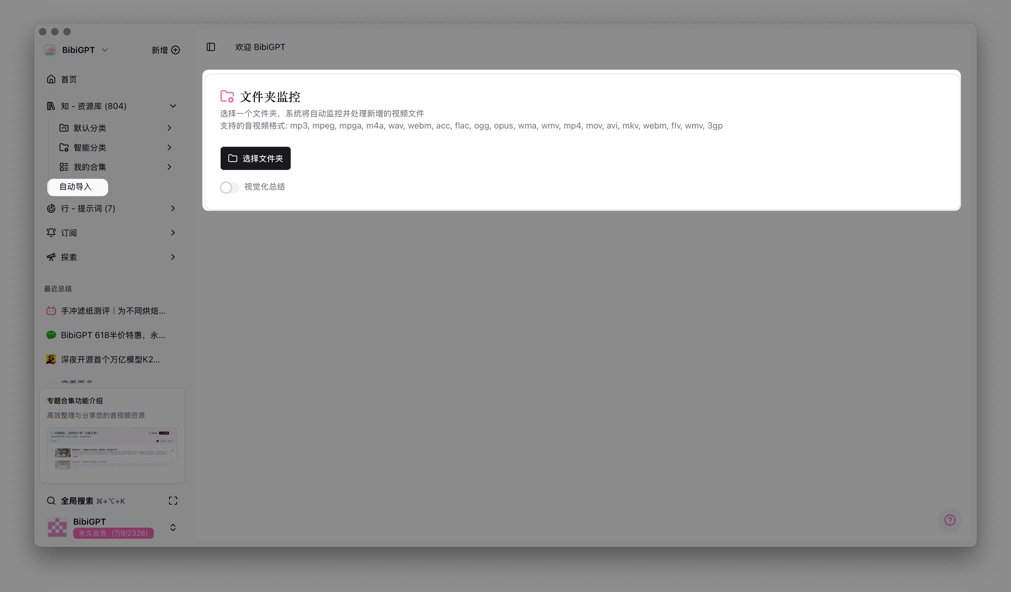 - Folder monitoring: Watch designated folders and let BibiGPT auto-detect new media files, prompting you to summarize them instantly.