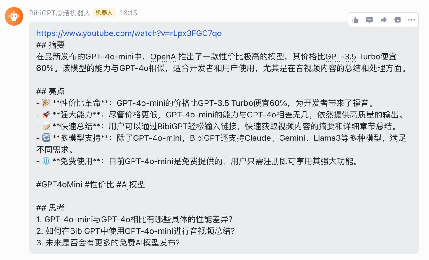 信息的高效流动:BibiGPT使您能够在多个平台上无缝同步总结内容,避免信息孤岛,确保关键数据的即时获取和分享。