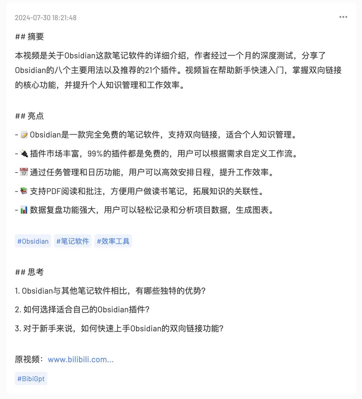 - Obsidian:将总结内容导入Obsidian,方便您进行深入分析和链接相关知识。