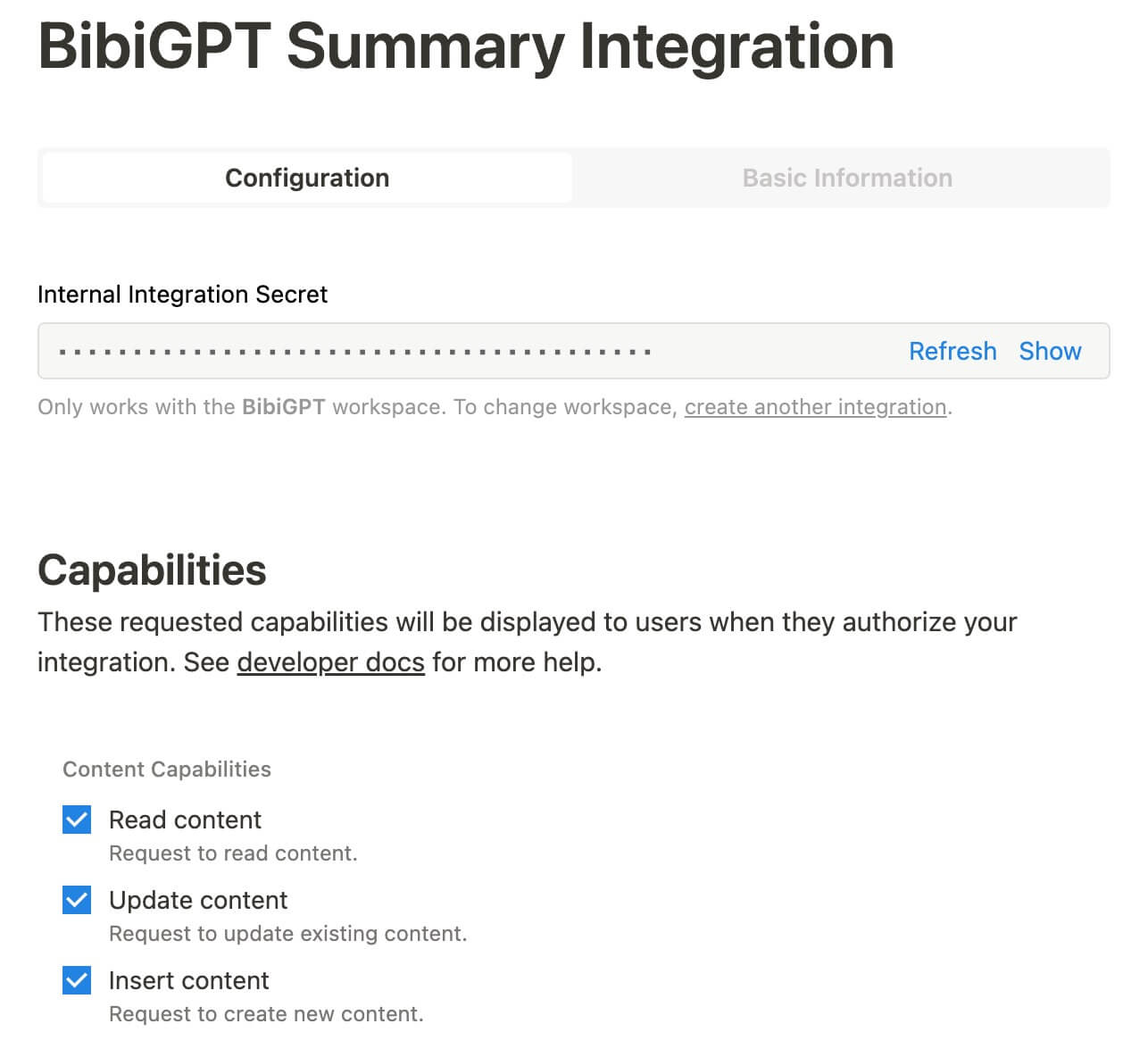 - 粘贴Token到配置项:返回BibiGPT的账号绑定页面,将刚刚复制的Notion Token粘贴到Notion Token配置项内。确保输入无误,以保证后续功能正常使用。