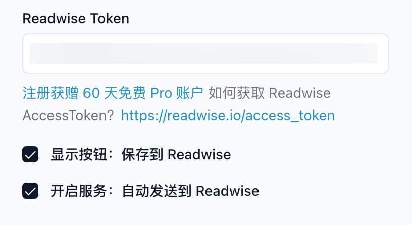 粘贴Token并配置选项:回到BibiGPT的账号绑定页面,在Readwise Token配置项中粘贴您刚刚获取的Token。接下来,您可以选择是否开启“显示按钮:保存到 Readwise”或“自动发送到Readwise”功能。前者允许您在生成AI总结后手动保存到Readwise,后者则会自动将总结发送至Readwise。