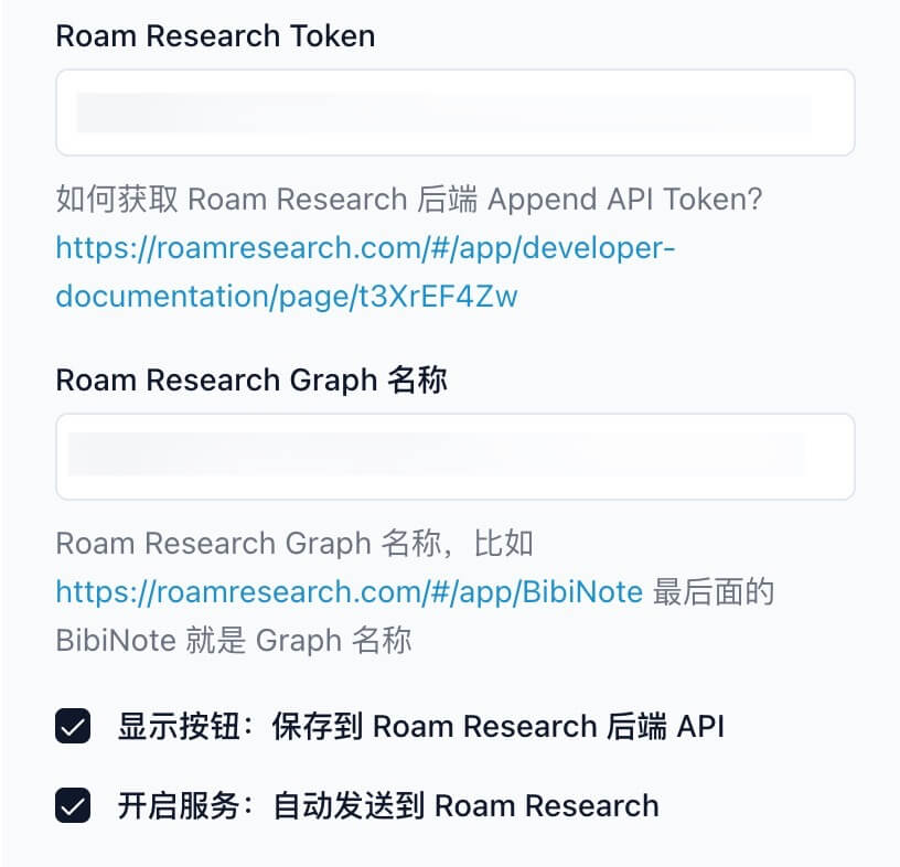 获取Roam Research后端Append API Token:在配置项下方找到相关链接,如何获取 Roam Research 后端 Append API Token?详细步骤可点击参考链接。这将帮助您了解如何获取 Roam Research Token。