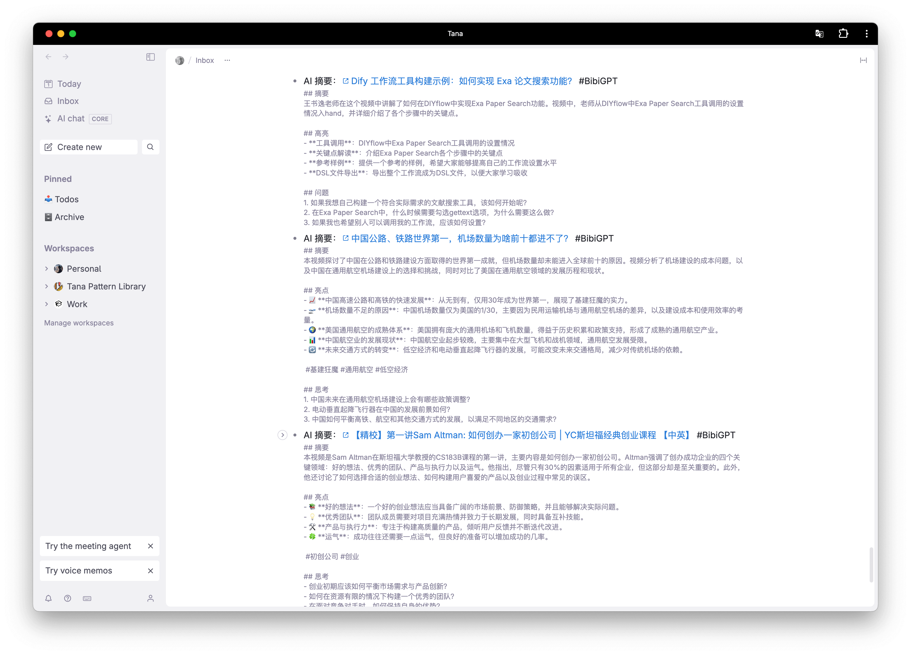 - Tana:在Tana中组织和管理总结,确保信息的系统化。