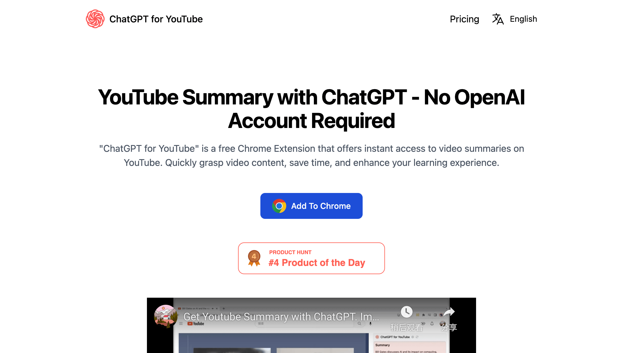 多语言与可用性: 支持生成任何语言的视频总结,并提供主流浏览器的扩展程序。