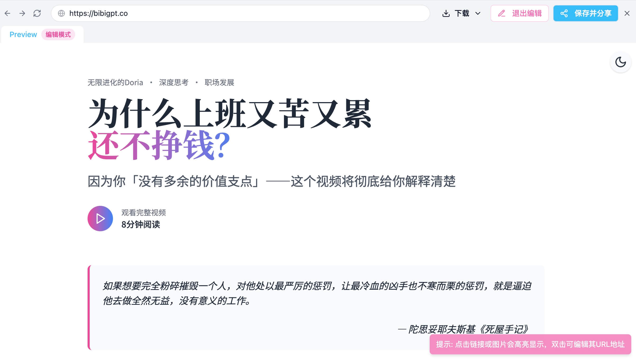 Long-form video learning is exhausting: you watch an hour, forget half of it, and dread rewatching just to revisit one idea. BibiGPT’s latest release fixes that with two AI-native features that compress dense videos into visual knowledge.