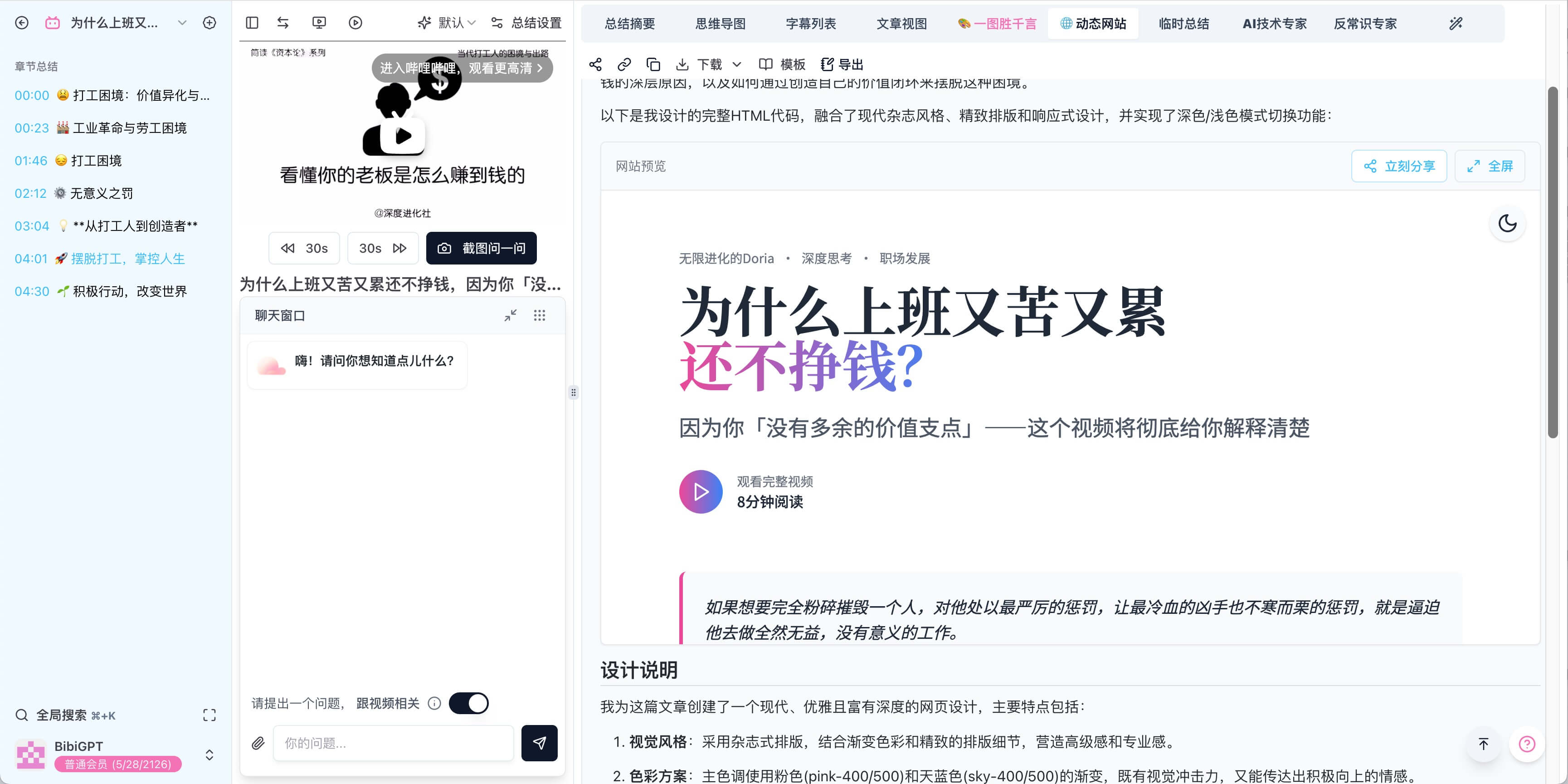 BibiGPT is more than a transcript generator. Alongside these two flagship features you still get: